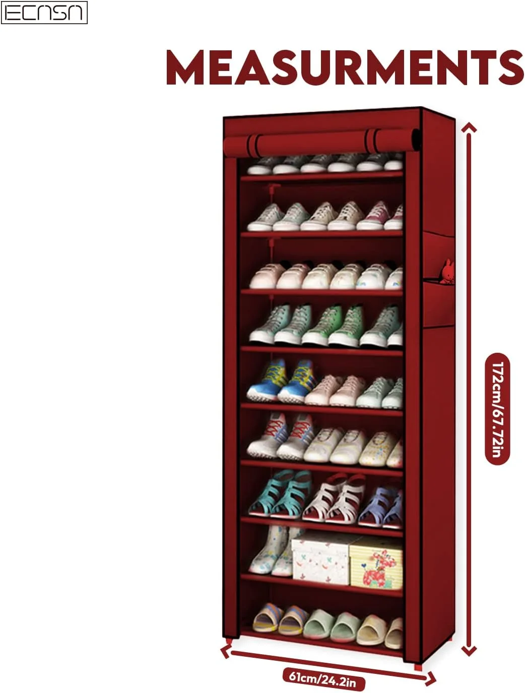 Holds 40β50+ pairs of shoes in one vertical, space-saving design.