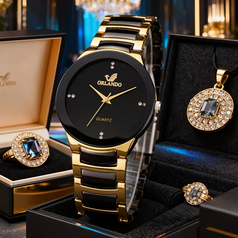 Orlando Duo is not just two watches. It's a declaration worn every day. For her, the champagne that illuminates every moment. For him, the black that commands presence. Two watches. One single heartbeat. A symbol of love, elegance and intention.